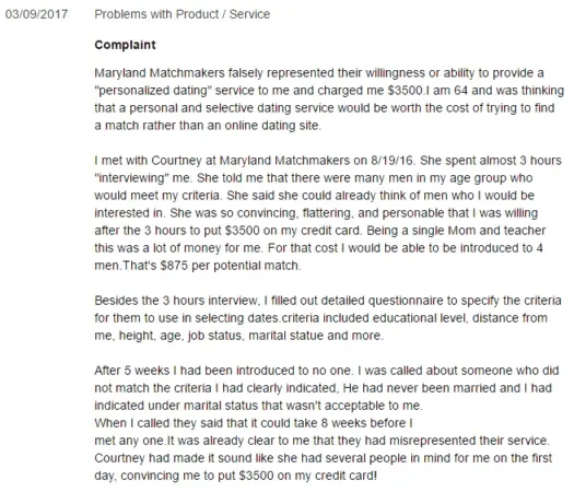 At a minimum, you may want to compare Maryland Matchmakers to some other dating service options.