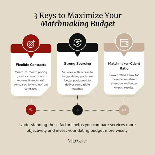 Understanding what drives matchmaking costs helps you make smarter decisions about where to invest your dating budget. These three factors help you identify the best value for your specific needs.