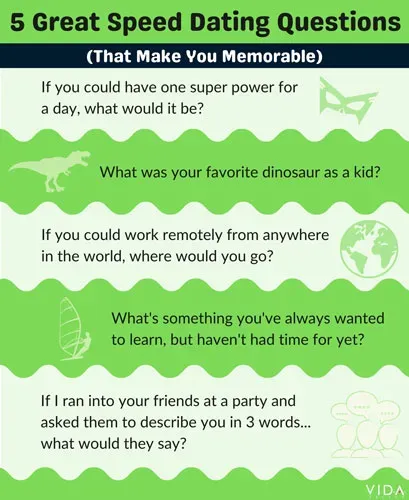 Success tip: Prepare 3-4 engaging questions that are easy to answer but more memorable than "What do you do?" The time limit makes conversation flow crucial, so avoid overly complex or personal topics initially.