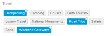 Once your profile is written, you’ll come to a screen where you can select different activities and interests.