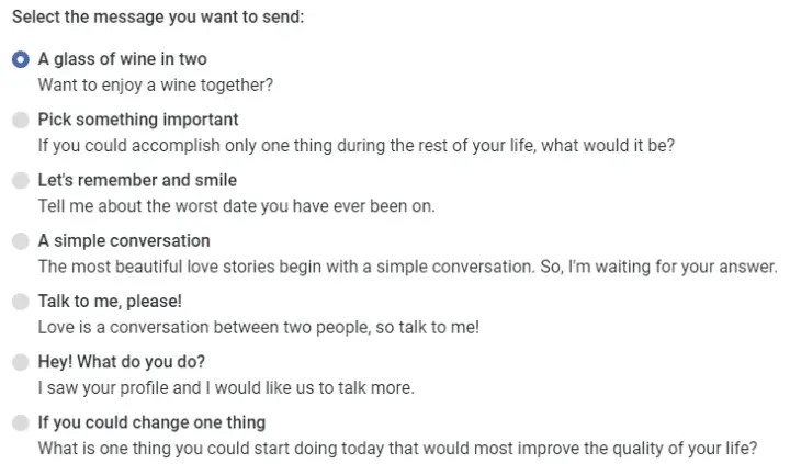You can choose which message you’d like to send from a list of options. Here are a few examples: