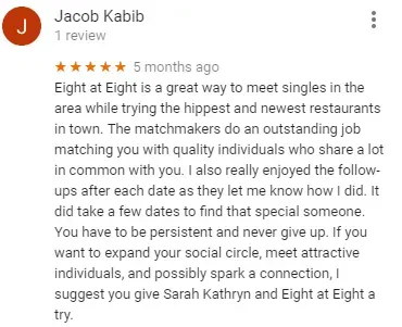 While the majority of 8 at 8 Dinner Club reviews on Google are 5 star, a handful of members weren’t nearly as happy with their matchmaking service.