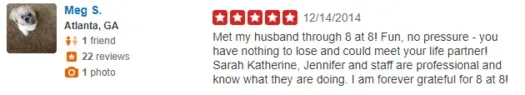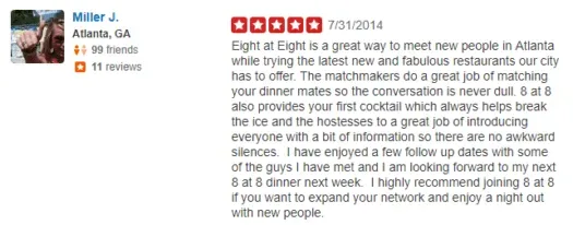 And this reviewer had follow up dates with several Atlanta singles she meet at dinner events: