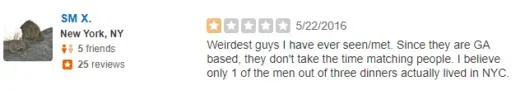 The handful of recommended 1-star reviews were from members who didn’t feel the other dinner attendees matched the type of person they were hoping to meet: