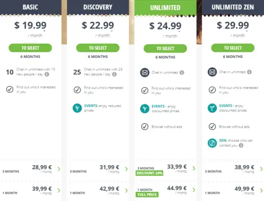 Choose wisely - as you can see some of the less expensive packages limit how many new matches you can message in a day.