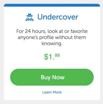 The cost of an Undercover session varies depending on which promotions are available at the time, but it is generally around $1.99 per use: