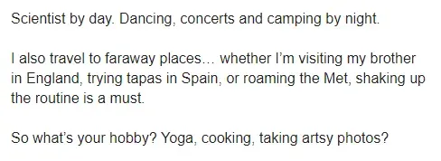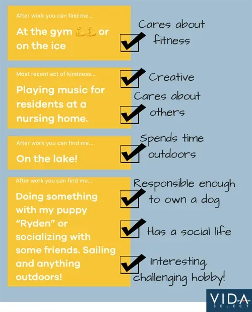 Just like in your Bumble bio, you want to share information that makes you look like a great catch: