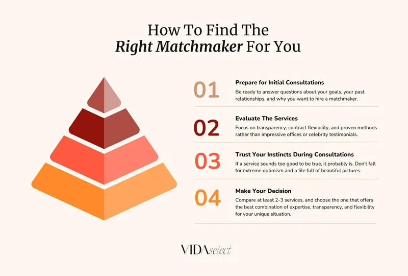 The best matchmaker for you combines professional expertise with a business model that aligns their success with yours. Don't rush the decision - take time to interview multiple services and compare their approaches.