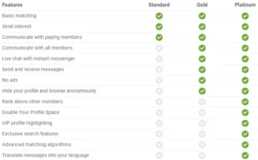 You can filter your matches via a wide array of search criteria, such as language(s) spoken and whether or not they’re open to relocation. Checking out who’s on the site is free, so you can take a look around before investing in a premium membership.