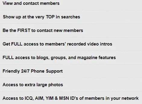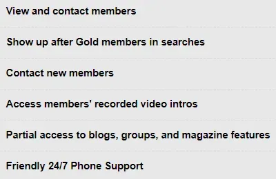 Standard (free) members are also limited to viewing only a handful of profiles each day, and can only reply to messages.