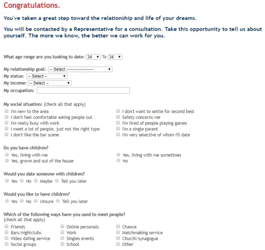 You can either complete the form online, or just wait to cover the information over the phone when your matchmaker gets in touch to set up the face-to-face office consultation.