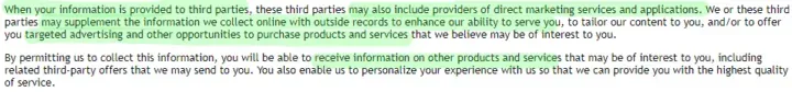 So in essence you're giving them authorization to provide (translation: sell) your contact info to third party providers, so you may notice a rise in hyper-targeted internet advertising and telemarketing calls.