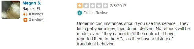 All 3 of the Naples Singles Yelp recommended reviews are 1 star. One reviewer felt they couldn’t fulfill their end of the contract, but wasn’t able to get a refund:
