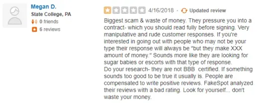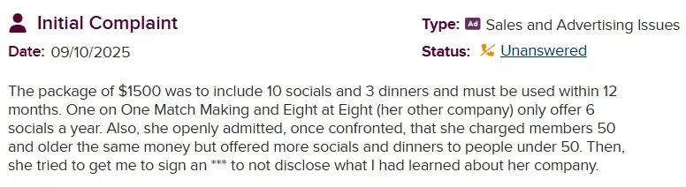 BBB complaint for One on One Matchmaking in Atlanta