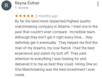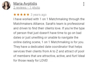 Maria Avgitidis, owner of Agape Match in New York City, also left a Google review praising this Atlanta matchmaking service: