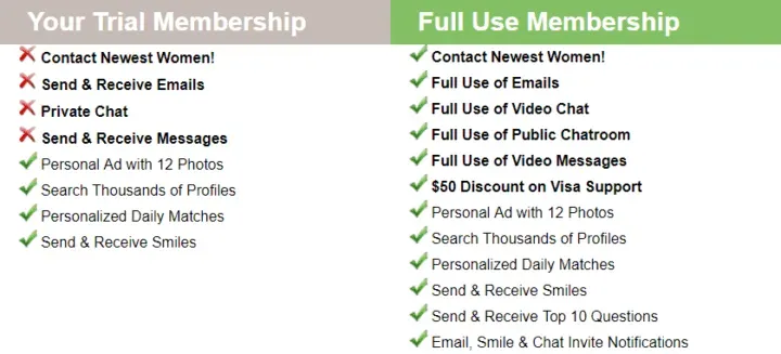 To access those features, you’ll have to purchase a “full use” membership, as the trial (free) membership only allows you to create your profile and search for potential matches: