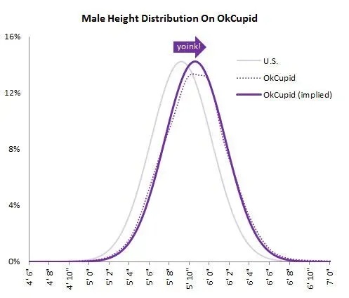 According to studies by OKCupid and Coffee Meets Bagel, men added anywhere from half an inch to two inches to their reported height.