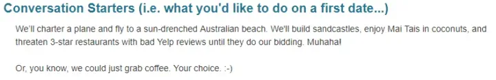 #6. Add An Intriguing Conversation Starter/First Date Idea