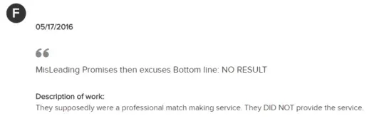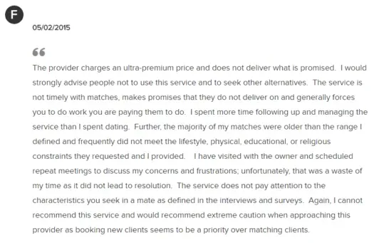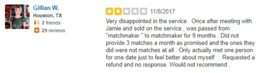 The other two clients both felt they didn’t receive the quality matchmaking service they were promised:
