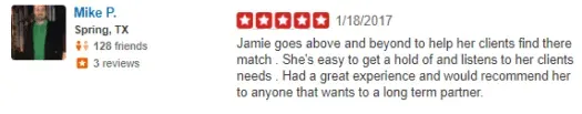 Positive reviewers reported meeting someone special through the service and praised their experience working with Jamie Rose.