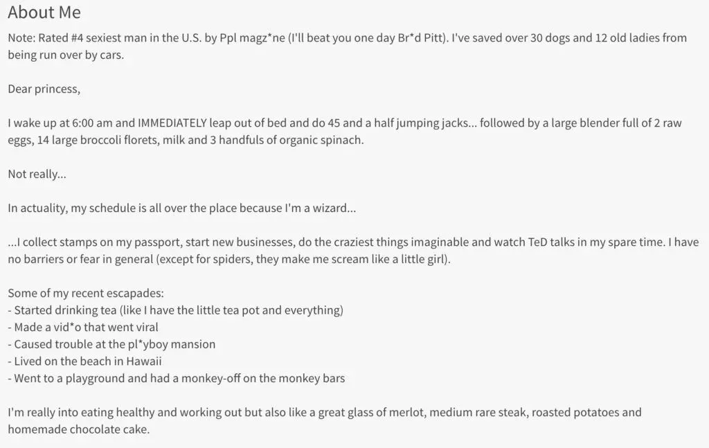 This isnât LinkedIn. Your profile shouldnât act like a business interview that lists out facts.