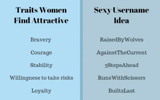 In a nutshell, women are biologically predisposed to want certain traits in a mate, and that’s just what good online dating usernames capitalize on. Here are some examples:
