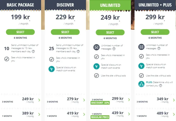 Here are the 3 premium membership levels this popular Swedish date site offers: