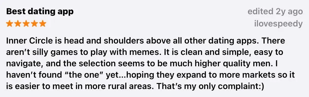 There’s no denying Inner Circle users are the cream of the crop. If you’re a young(ish) single professional in one of the cities where it’s available, it’s likely worth trying...