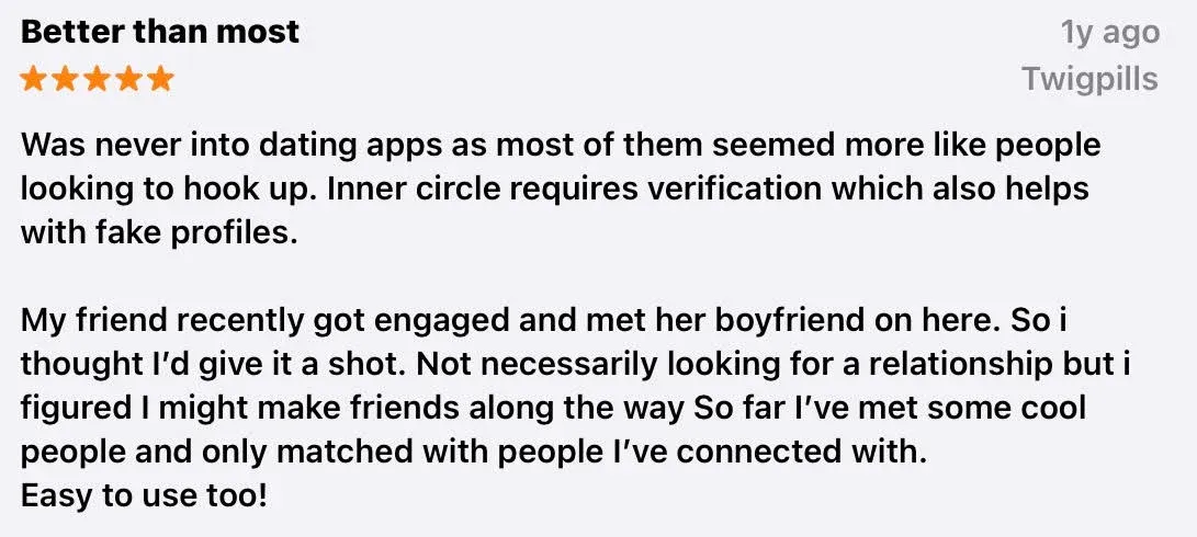 The Inner Circle has a 1.3 rating on Trustpilot, with some positive reviews sharing that the app was “high-quality”. This man said that he met his girlfriend through Inner Circle: