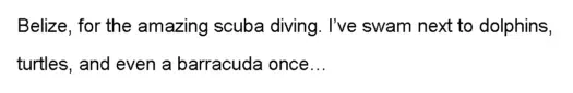 The “Best place to go” section is another area where you can create attraction. Guys, choose a place that she’d want to imagine herself visiting, and describe an activity you like to do there.