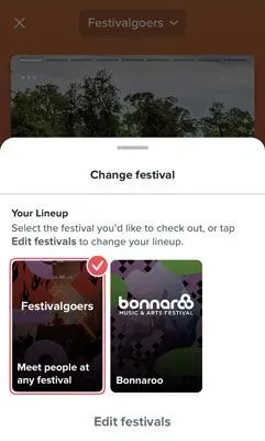 The “Festivalgoers” feed is the default setting in Festival Mode. That’s where you can meet people who are interested in going to any event, or just love live music in general and want to connect with other fans.